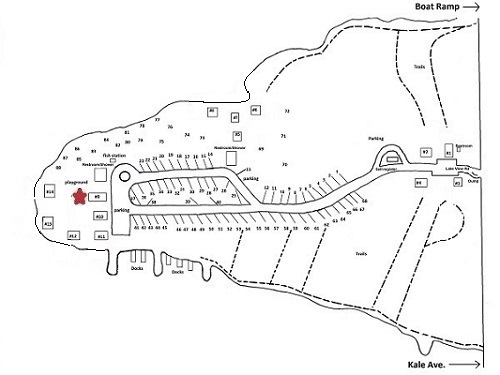 Walleye Cabin (#9) is a west facing cabin at the end of the park, positioned to the South of the Shower/Restrooms. When you enter the Lake View Campground and come to the y-intersection, keep left and follow the road to the far west parking lot.
