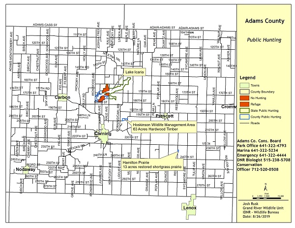 Donated to Adams County Conservation Board in September 2005 by Neil Hamilton and the Iowa Natural Heritage Foundation. Goal is to return the land to it's natural prairie state as it was in the 1870s when the Hamilton family acquired it.