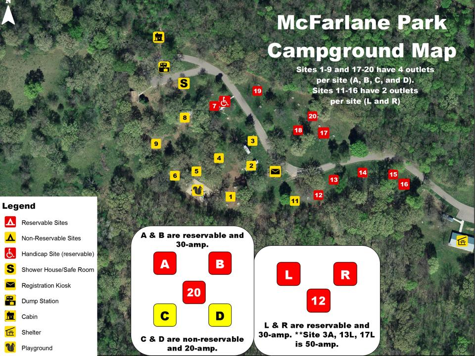 Location This site is located near the shower house in the campground on the left hand side of the road. Sites are numbered on the electrical posts that correspond with the site.