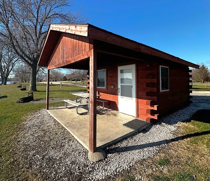 Cabin Pike is also noteworthy for its covered cement patio deck, which overlooks the serene lake. A picnic table is provided on the deck, and a fire ring is located right in front of the cabin. Explore Featherstone Memorial Park's many attractions, including a trail that encompasses the entire lake, a disc golf area, a fantastic lake for boating, a playground, and a shoreline that's great for fishing. Please note that pets are not allowed inside the cabin.