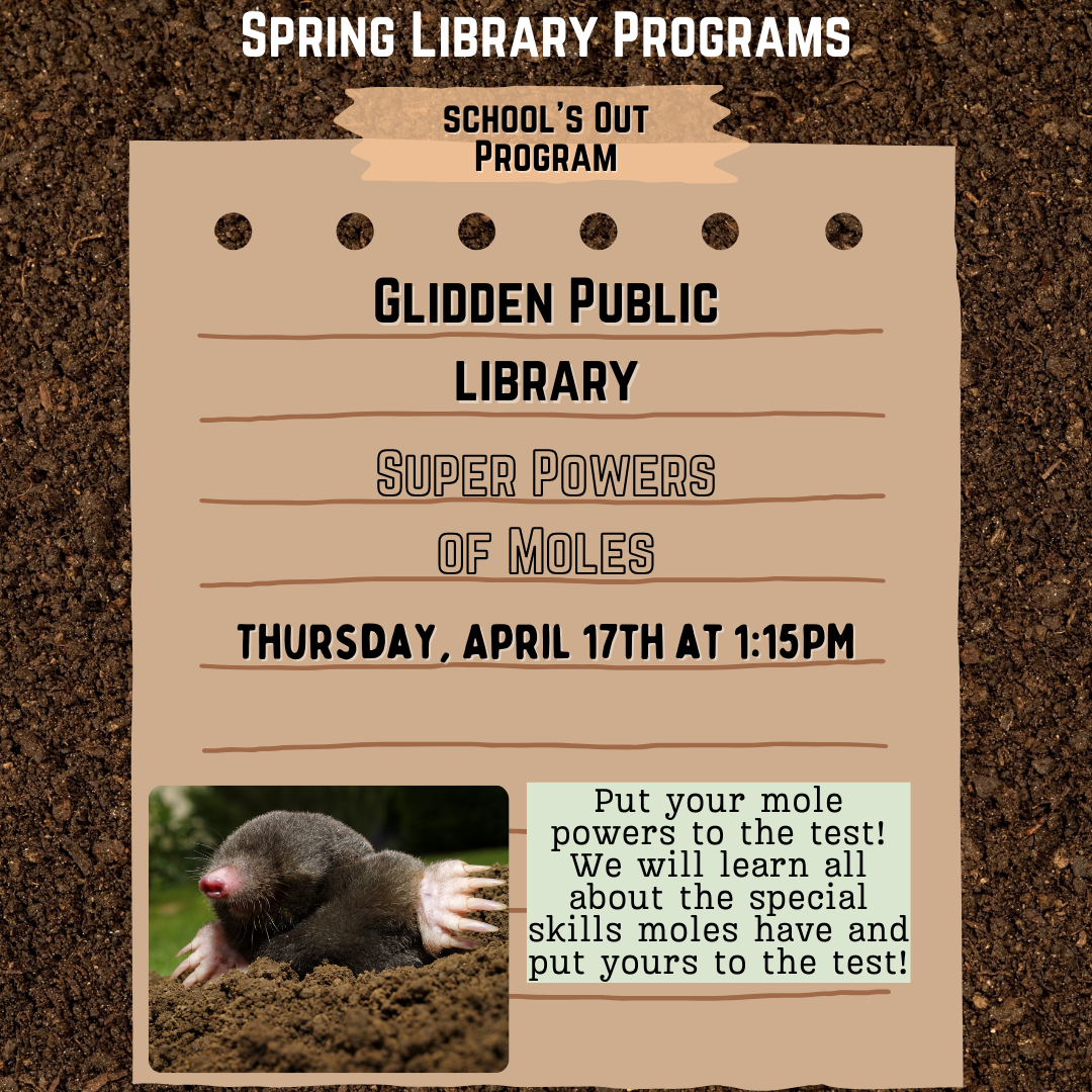 You have successfully set a reminder for Glidden Public Library - School's Out Porgram