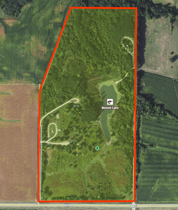 Bennett Park is a 75 acre park with a campground, three shelters, playground, pond, prairie, and several trails.