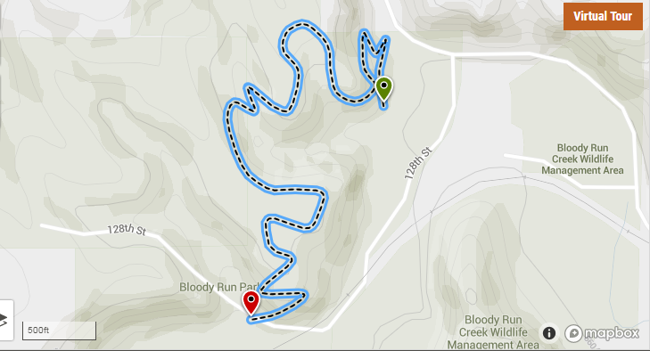 A rugged 1 mile hiking trail, with trail heads at the north and south end of the park, leads through dense forest to the blufftops, where spacious Oak Savannas provide splendid views of the valley below.