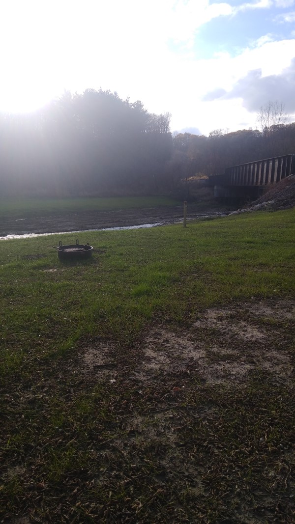 This primitive campsite contains a fire pit, picnic table, and can have one RV or one trailer, or two tents on the site. Two motor vehicles are allowed per campsite.