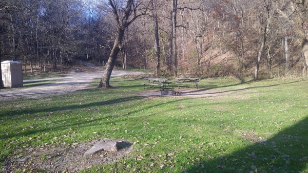 This primitive campsite contains a fire pit, picnic table, and can have one RV or one trailer, or two tents on the site. Two motor vehicles are allowed per campsite.