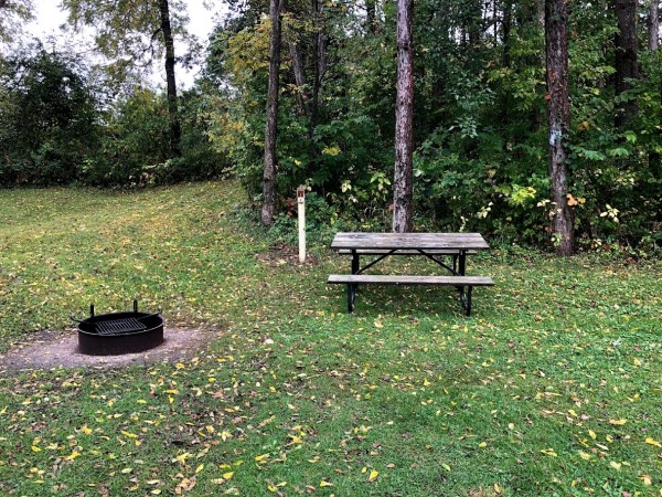 This primitive campsite contains a fire pit, picnic table, and can have one RV or one trailer, or two tents on the site. Two motor vehicles are allowed per campsite.