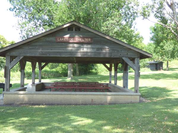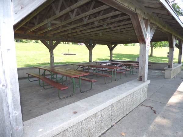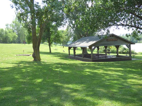 This open shelter has eight picnic tables, grills, lighting, and electrical outlets. The shelter is located close to the water and has easy access for fishing also.