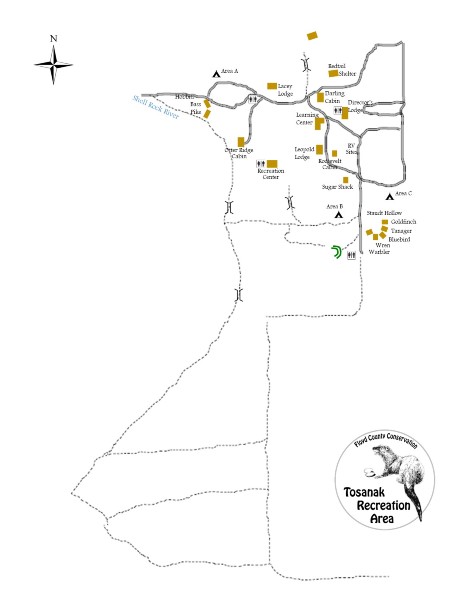 Scenic trails along the Shell Rock River and through mature Oak Hickory woods. Trails are open year-round.