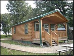 - Each cabin has a 6'X15' deck facing the lake. Also included outside of each cabin is a picnic table, a campfire ring and parking for 2 vehicles.