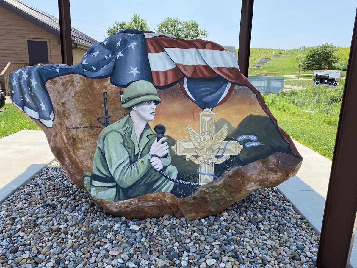 The Welcome Center is home to Harrison County’s Freedom Rock. Each county’s rock is tailored to reflect local heroes—from Medal of Honor recipients to WWII nurses to community members who served. This is a powerful, living tribute to U.S. veterans.