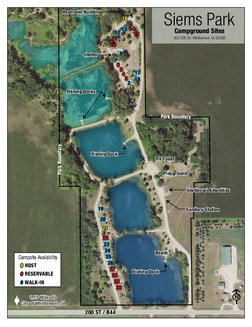 Siems Park offers 29 campsites, of which 50% are reservable. Click on Facilities on the left sidebar for more information.