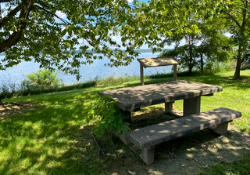 Nestled just off Highway 61, Linger Longer Rest Area offers a picturesque stop with stunning views of the Mississippi River and Nauvoo. This charming spot features a small shelter house and picnic areas, making it the perfect place to relax, enjoy a meal, and take in the scenic surroundings.