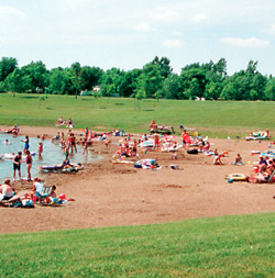 This 282 acre area provides a wide variety of recreational opportunities for the public’s enjoyment. The 72 acre lake, which is surrounded by restored habitats, has excellent angling opportunities for large-mouth bass, blue-gill, and channel catfish fishermen. A concrete boat ramp provides an easy and quick access. Only electric trolling motors, oars, and paddles are permitted on this beautiful lake due to its size. There are paddle boats, canoes, and kayaks available to rent if needed. Along with fishing, there is a designated swimming area that can be utilized during park hours, although lifeguards are not provided. The beach area has both basketball and volleyball courts near by. The area offers a total of 71 camp sites including 8 modern electrical/water and 63 modern electrical. For group gatherings, the park has 2 enclosed shelter houses along with 6 open shelters, as well as a scout area for any scout groups use. Throughout the park you will find 3 playgrounds, numerous picnic tables, pedestal grills, picnic shelters, 3 sand volleyball courts, a basketball court, a 9 hole disc golf course, 4 modern restrooms, and 3 vault toilets. There are 6 modern rental cabins available year round overlooking the lake, along a 3.5 mile long concrete bike trail that encircles the lake and a variety of natural habitats including shoreline, prairie, native trees and shrubs, and a food plot. Public Hunting is allowed in season on a portion of the area. Loaded weapons are only allowed on these designated areas.