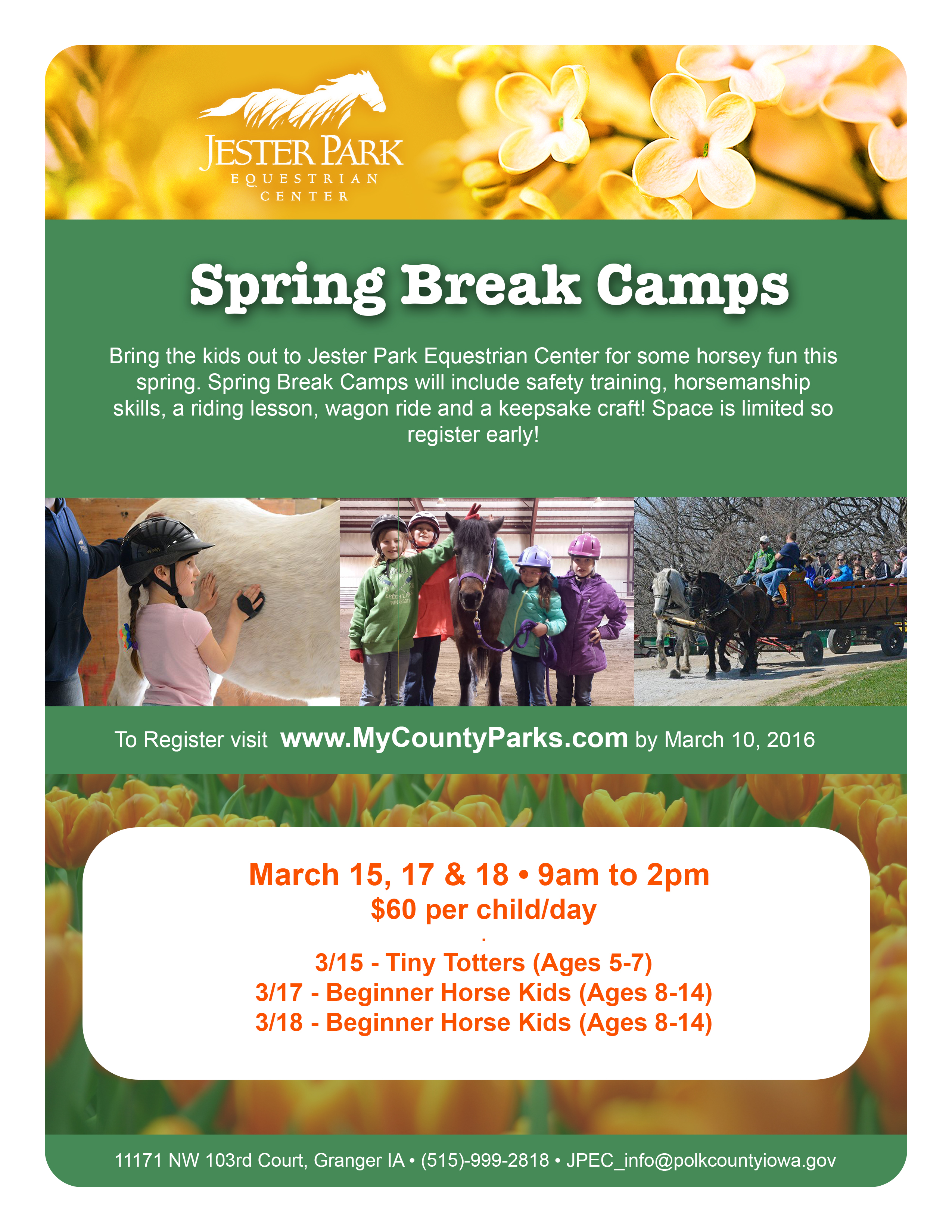 Camps will include safety training, horsemanship skills, a riding lesson, a wagon ride, and a nature hike.