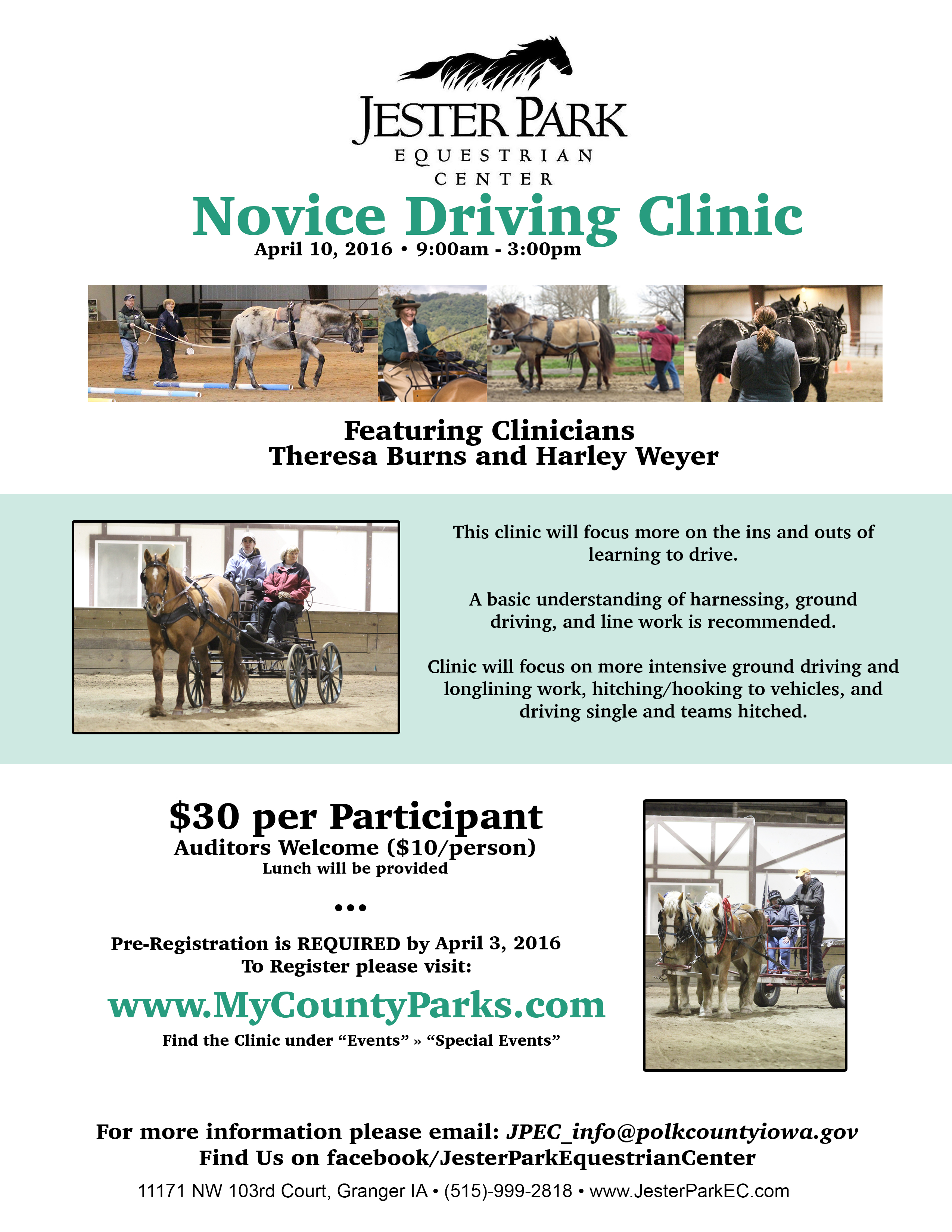 We had a wonderful introductory clinic early this year and it was such a success that we're excited to have Theresa and Harley back for round #2! This clinic will focus more on the ins and outs of learning to drive and is progress off of the clinic in January.