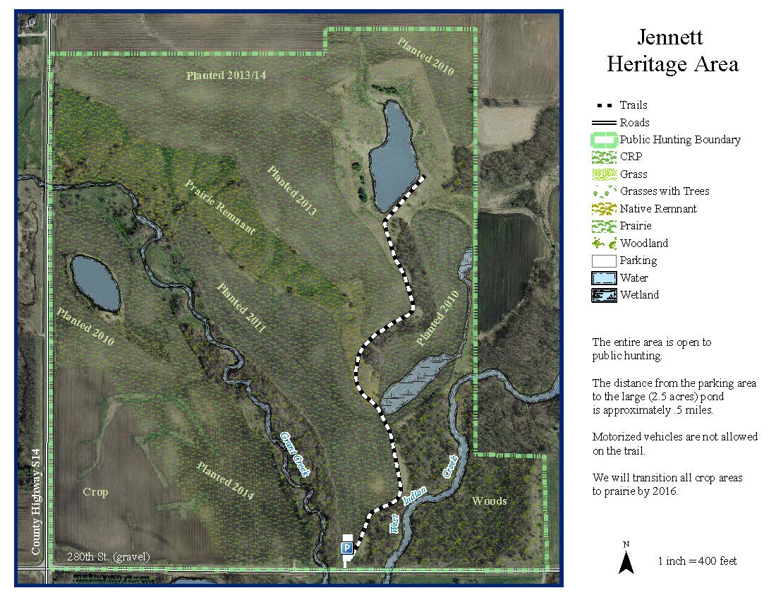 While its biodiversity and species are impressive, Jennett is not pristine. The area's wetlands are being reconstructed, as are large portions of the prairie. The native prairie remnants have some woody invasive species that will require further work along with the oak savanna and riparian woodlands.