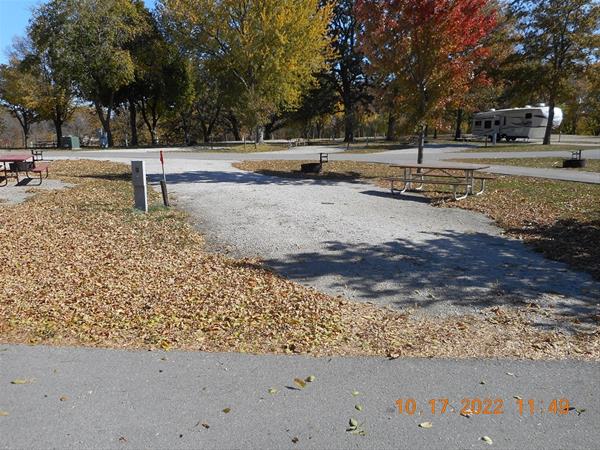 Drive through asphalt pad 75 feet long with 50/30/20 amp electric service, sewer and water hookup. A picnic table and fire ring are provided.
