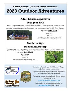 Naturalists with Clinton, Dubuque, and Jackson County Conservation Departments are partnering again in 2023 for some overnight adventure trips!!