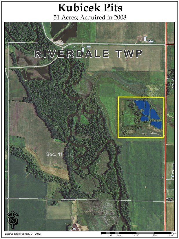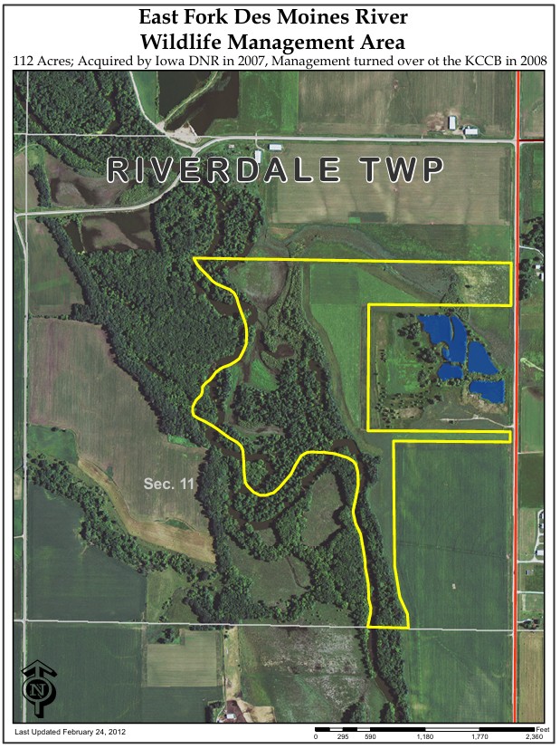 Kubicek Pits is a 54 acre public hunting area. It is a former gravel pit area and offers public hunting,wetland and upland areas. It adjoins the 112 acre East Fork Wildlife Management Area which is jointly managed by the Iowa DNR and the Kossuth County Conservation Board. This area offers public hunting, walk in access to the East Fork Des Moines River, river bottom timber areas, reseeded native prairie, and seasonal wetlands.