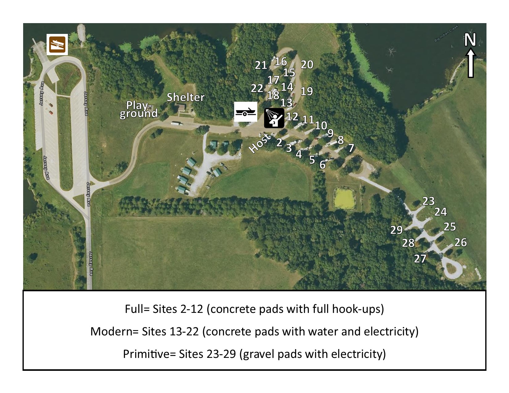 10 Modern hook-up campsites (13-22) Drive ins are welcome if sites are not reserved